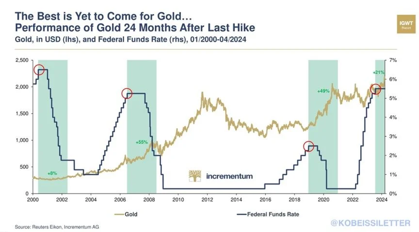 “Every beginning of a Fed interest rate cut cycle in the last 25 years has led to an increase in gold prices.”